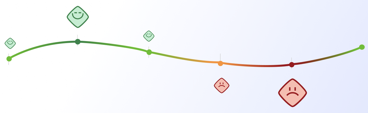 The way experience is measured depends on the tool used. In this project, we used TheyDo. In TheyDo, each insight includes an experience impact score , ranging from –2 to +2: